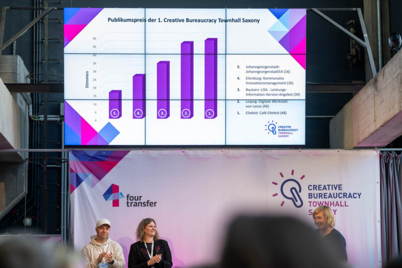 Wir bedanken uns bei allen Teilnehmenden für eine wunderbare Premiere der Creative Bureaucracy Townhall Saxony, die wirklich den Spirit des Creative Bureaucracy Festivals Berlin in den Freistaat Sachsen gebracht hat. Explizit gratulieren wir dem Projekt „Johanngeorgenstadt’54“, das mit dem Jurypreis ausgezeichnet wurde, sowie der Initiative „Café H36 Ellefeld“, die mit dem Publikumspreis geehrt wurde. Einen ausführlichen Veranstaltungsrückblick finden Sie hier.